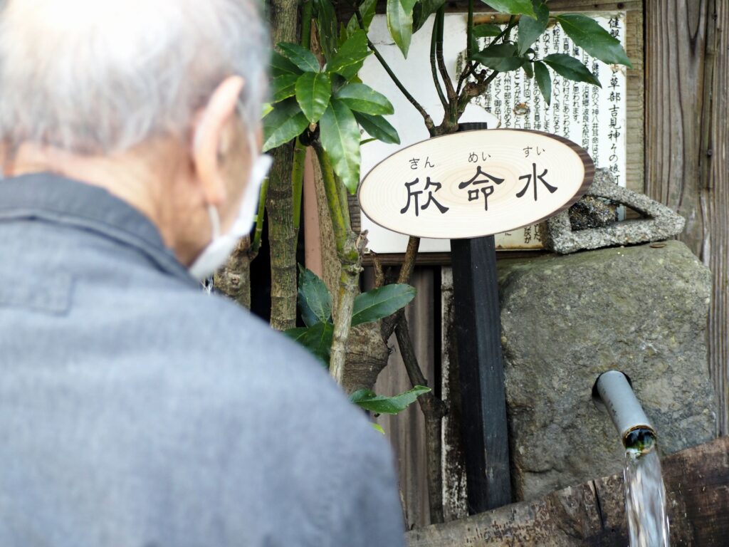 10月20日と27日に作業療法活動の一貫として阿蘇一の宮門前町商店街を散策しました。当院から阿蘇神社までの約500mの横参道からつづく小径(こみち)には昔からの商店と湧き水の「水基(みずき)」が点在しています。この地域に住む人びとは古くから湧き水に恵まれ、「水基」は生活に寄り添う水飲み場となっています。
